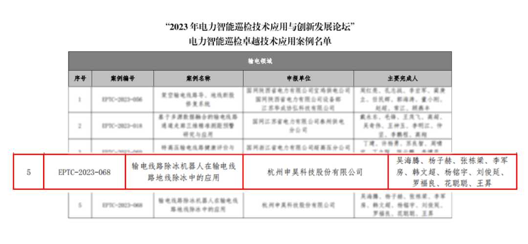 近日,在“2023年電力智能巡檢技術應用與創新發展論壇”上公布了2023年度電力智能巡檢技術應用案例遴選結果,其中杭州申昊科技股份有限公司斬獲卓越技術應用案例1項和創新技術應用案例2項。